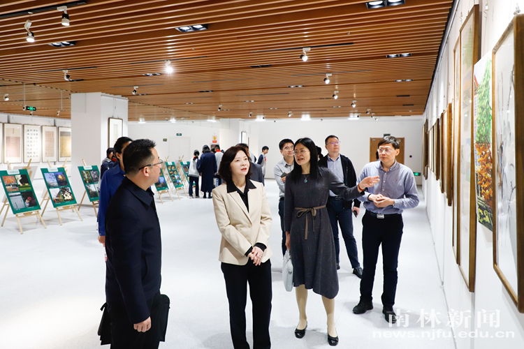 开幕式后,与会嘉宾、师生代表等共同前往图书馆A馆多功能空间参观生态书画摄影作品展。展览以艺术形式展现南林人“让黄河流碧水,赤地变青山”的使命与担当,弘扬人与自然和谐共生的生态文明理念。展览将一直持续到4月30日。本次书画摄影作品展是第八届生态文化节的子活动之一,由党委宣传部主办,图书馆、校工会、艺术设计学院、教职工书协、离退休书画协会、教职工摄影协会、大学生书协、研究生书画协会、南林校友书法社共同协办。
